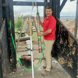 Preliminary findings from the June visit are promising. Jim and his colleagues confirmed a steady water temperature of 88°F (31.4°C) down to 1300 feet (396 meters), indicating an excellent and consistent geothermal resource. While logistical constraints remain—such as gaining full access through the closed upper portion of the shaft—several alternative system designs, including the Darcy System, Genesis ‘in-well’ heat exchangers, and a closed-loop concentric system are being evaluated to harness this energy efficiently.
