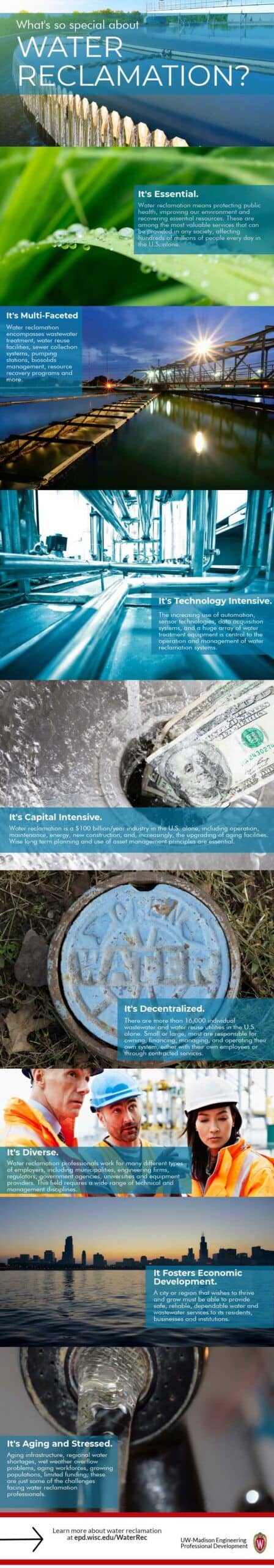 If you’re considering a career in water, or have a passion for environmental engineering, consider water reclamation. UW-Madison offers a Certificate in Water Reclamation for engineers and other technical professionals who work in the water or wastewater industry.